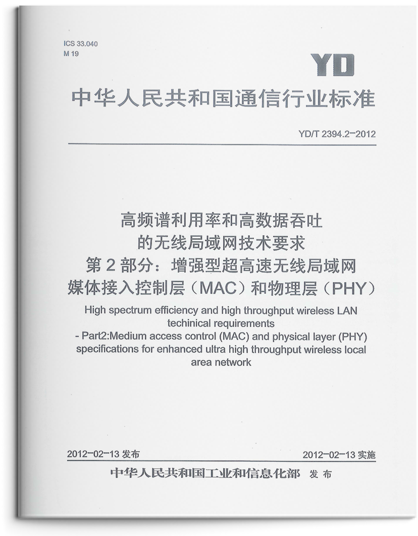 This standard specifies medium and high speed wireless LAN media access control and physical layer specification, including system reference model, media access control layer structure, media access control layer frame format, media access control layer function, physical layer, etc. This standard is applicable to the design, development and production of medium and high speed WLAN systems.